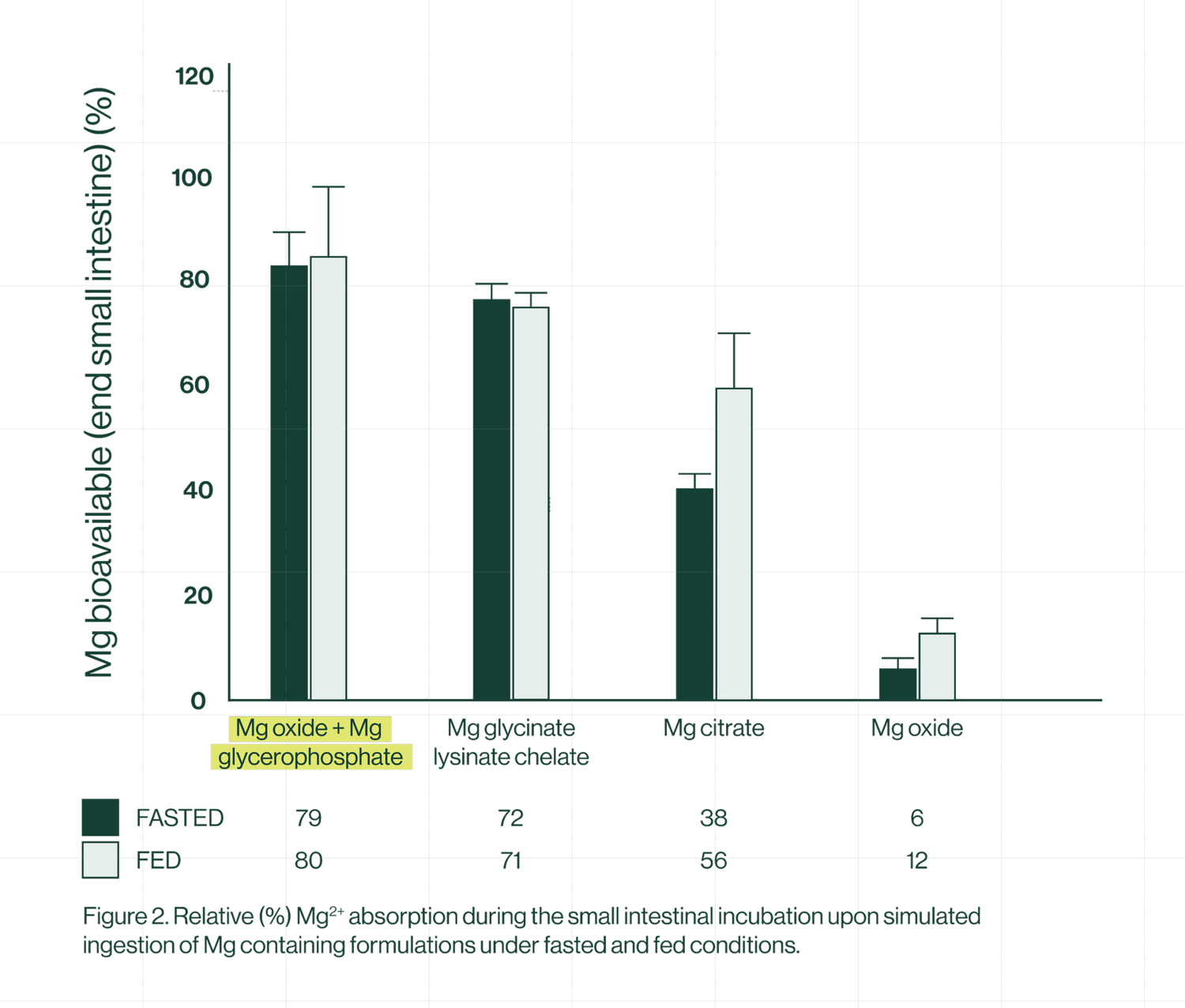 A 2019 in vitro gastrointestinal simulation study (SHIME) tested 15 different magnesium formulations and found that GIVOMAG™ - the magnesium glycerophosphate used in Cymbiotika’s Magnesium Complex - demonstrated high bioaccessibility and bioavailability in comparison to other conventional forms.